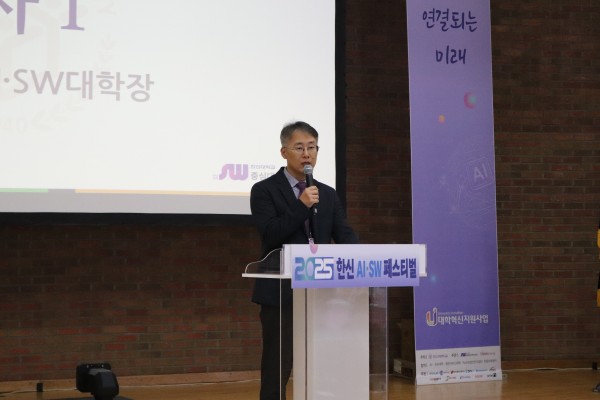 ▲ 박성진 AI·SW대학장이 축사를 전하고 있다.